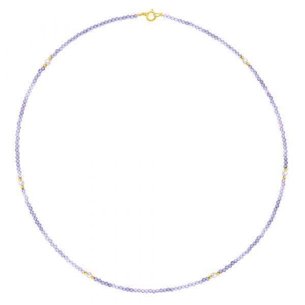 Κολιέ με Κ14 χρυσά στοιχεία, αμέθυστο και λευκά μαργαριτάρια – F124435