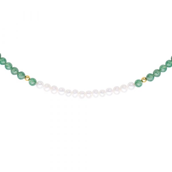 Κολιέ με Κ14 χρυσά στοιχεία, αβεντουρίνη και μαργαριτάρια – F124463
