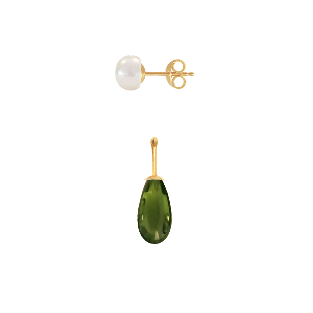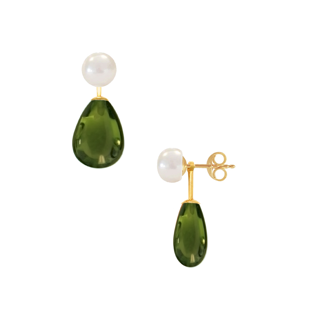 Σκουλαρίκια Κ14 χρυσά με λευκά μαργαριτάρια και Peridot -G124995P
