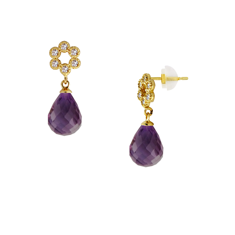 Σκουλαρίκια σε Κ14 χρυσή βάση με ημιπολύτιμο λίθο Amethyst – F123042AM
