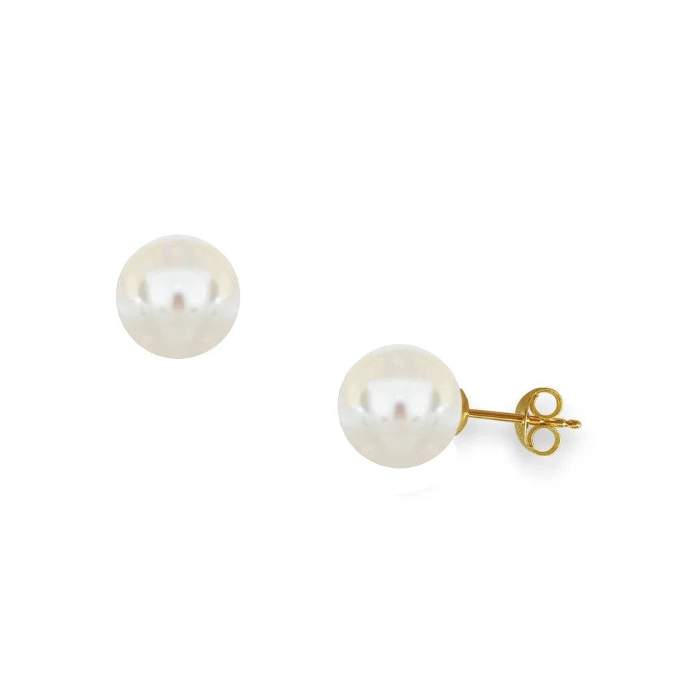 Σκουλαρίκια σε Κ14 χρυσή βάση και λευκά Shell Pearl – G125095