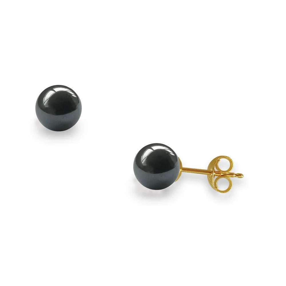 Σκουλαρίκια σε Κ14 χρυσή βάση και αιματίτη- G318635A