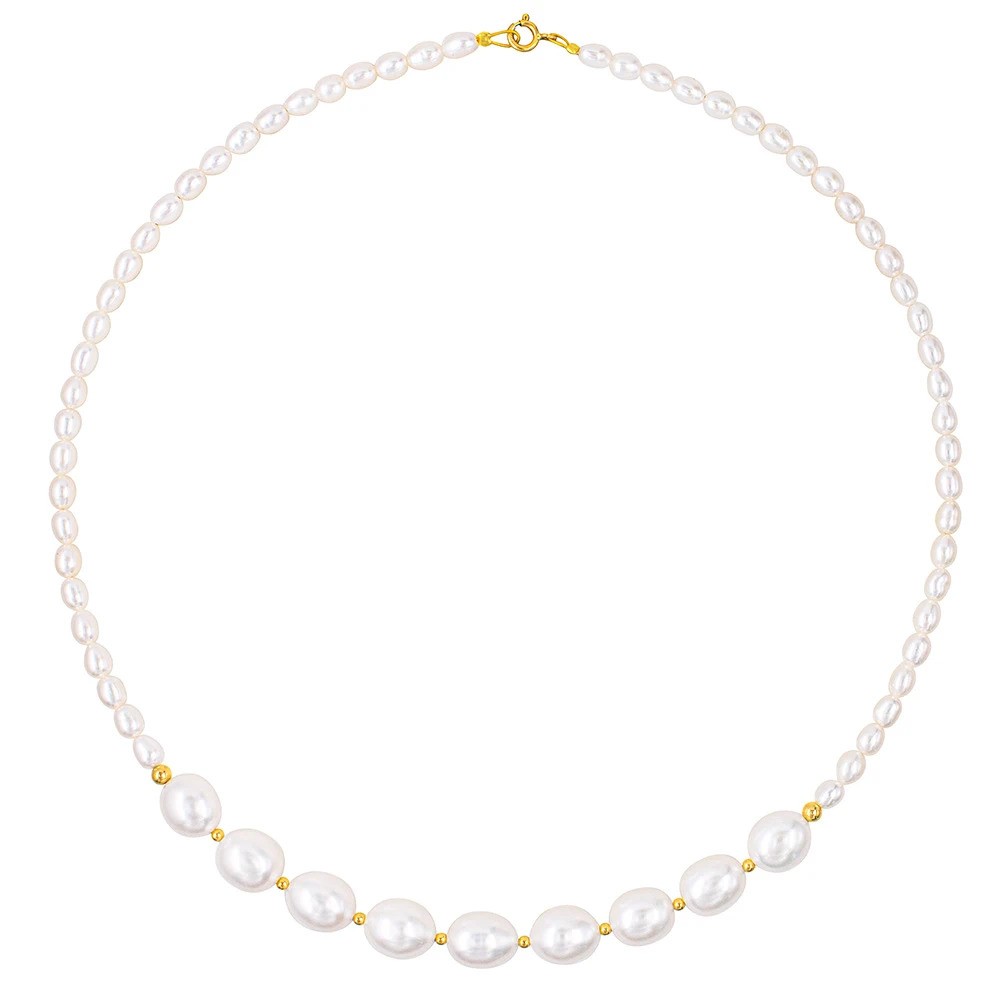 Κολιέ με Κ14 χρυσά στοιχεία και λευκά μαργαριτάρια – F125857
