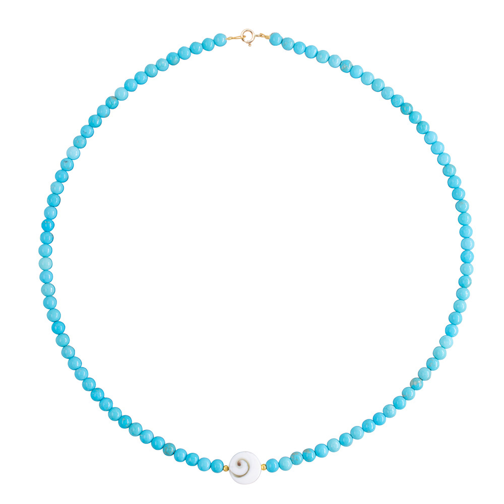 Κολιέ με Κ14 χρυσό κούμπωμα, τιρκουάζ και μενταγιόν – F126072T