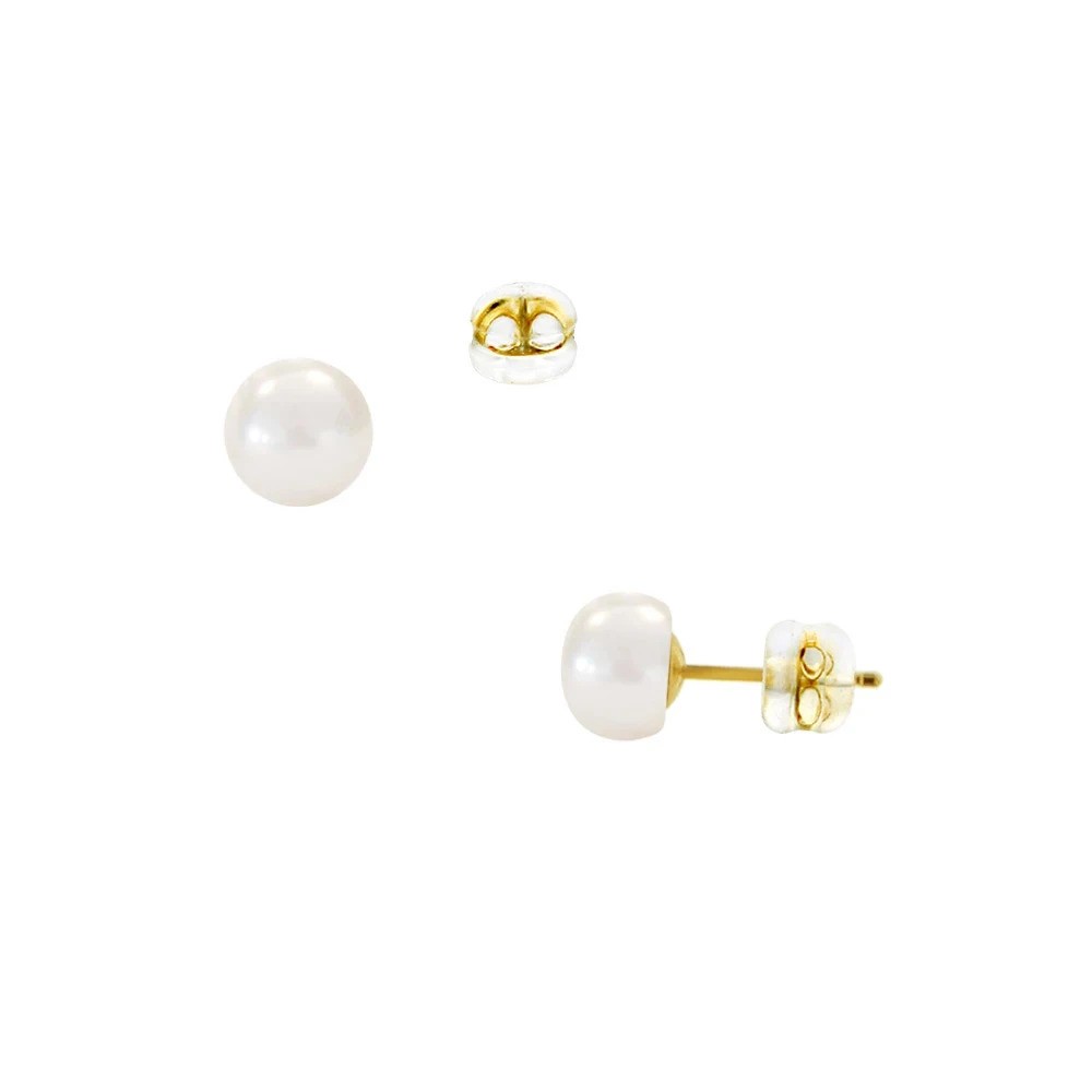 Σκουλαρίκια Κ14 χρυσά με κούμπωμα σιλικόνη και λευκά μαργαριτάρια 6.5-7 χιλιοστών – G122045