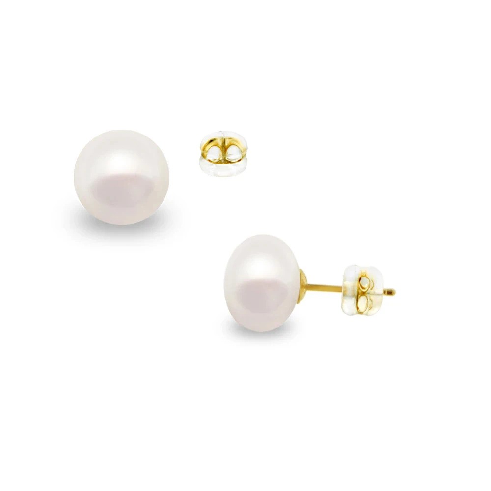Σκουλαρίκια Κ14 χρυσά με κούμπωμα σιλικόνη και λευκά μαργαριτάρια 7.5-8 χιλιοστών – G122046