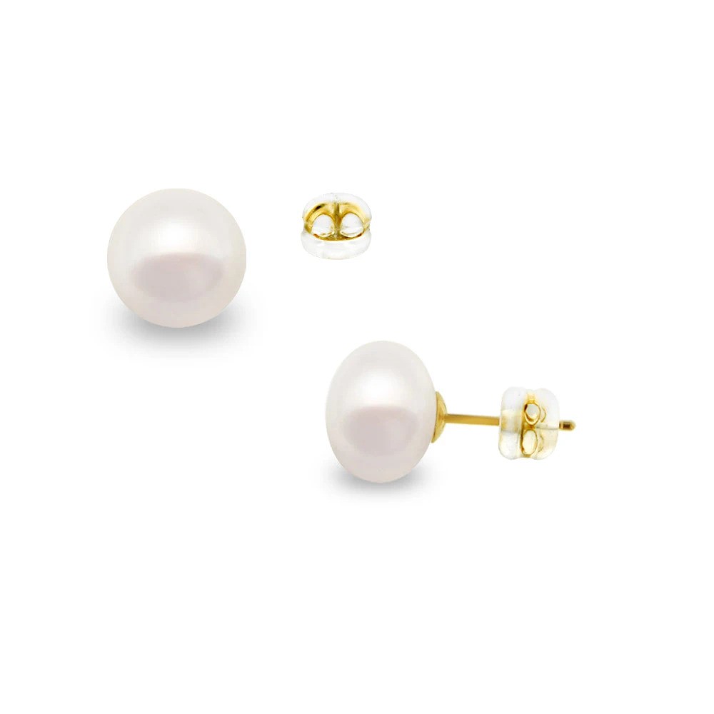 Σκουλαρίκια Κ14 χρυσά με κούμπωμα σιλικόνη και λευκά μαργαριτάρια 8.5-9 χιλιοστών – G121872