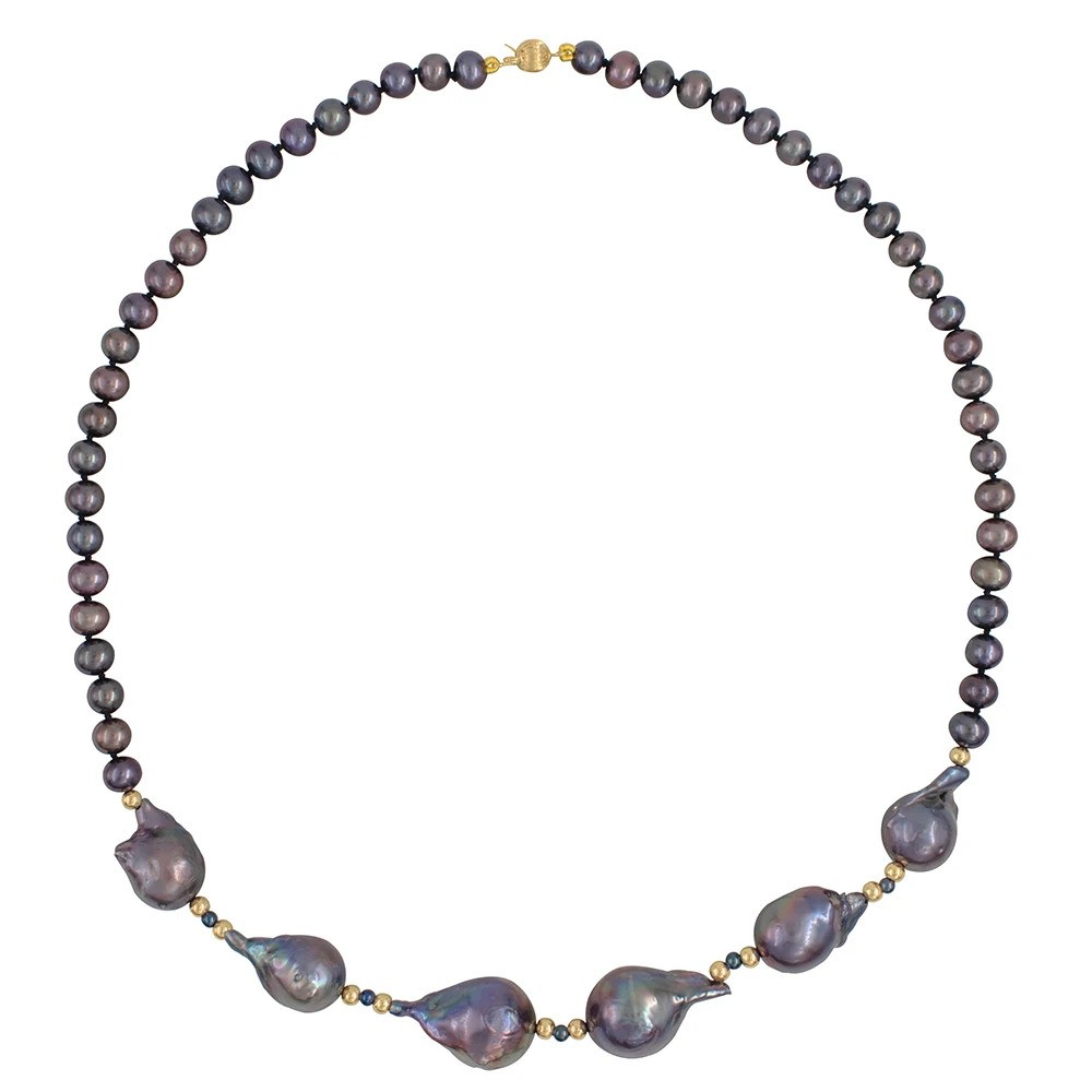 Κολιέ με Κ14 χρυσά στοιχεία και μαύρα μαργαριτάρια Baroque – F126493