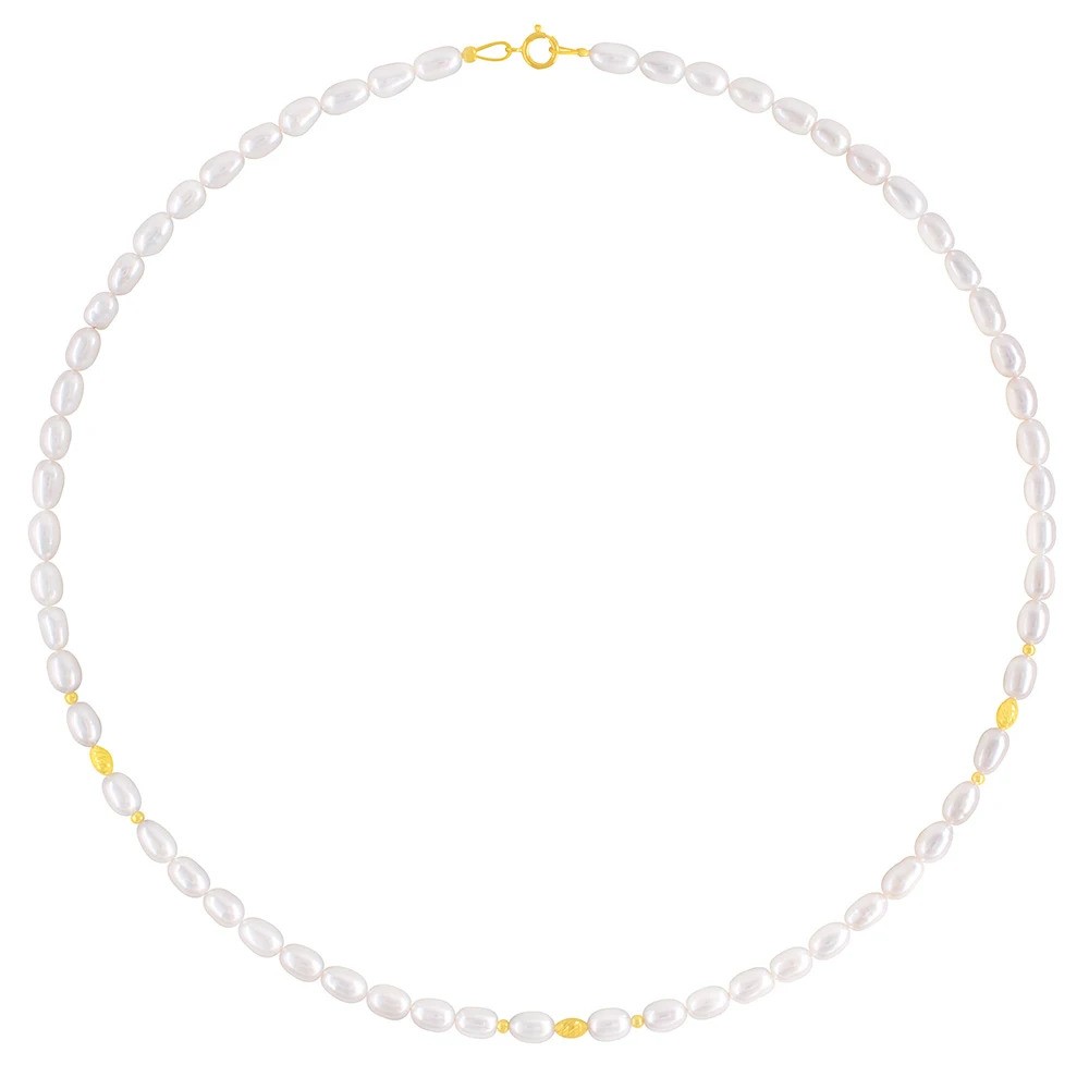 Κολιέ με Κ18 χρυσά στοιχεία και λευκά Long μαργαριτάρια – F126698